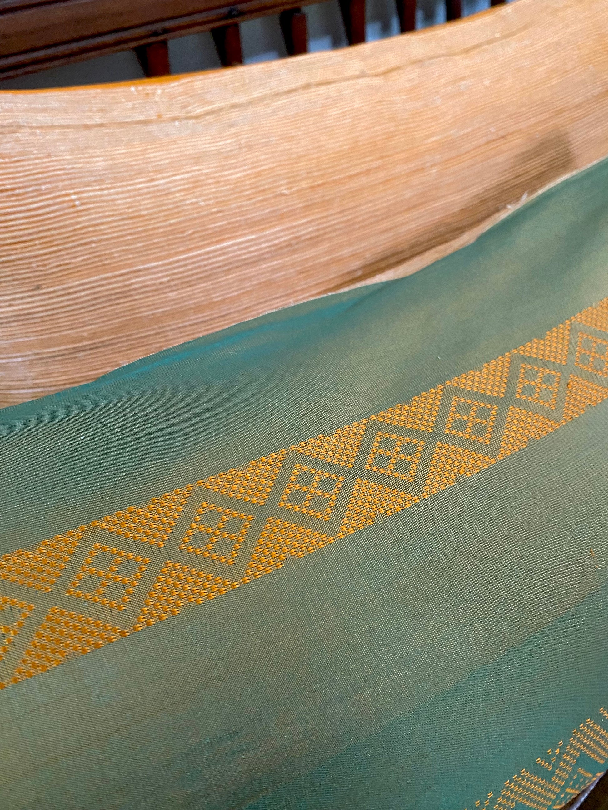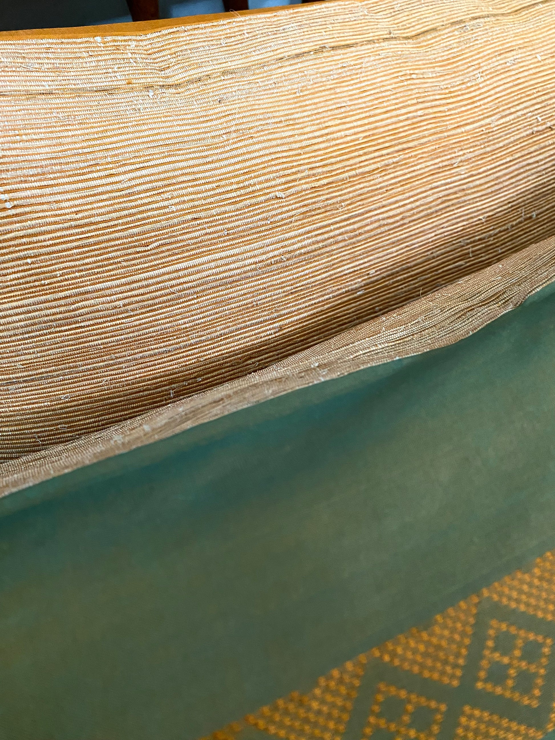 - 100% hand-woven silk & banana threads, featuring woven Chin pattern