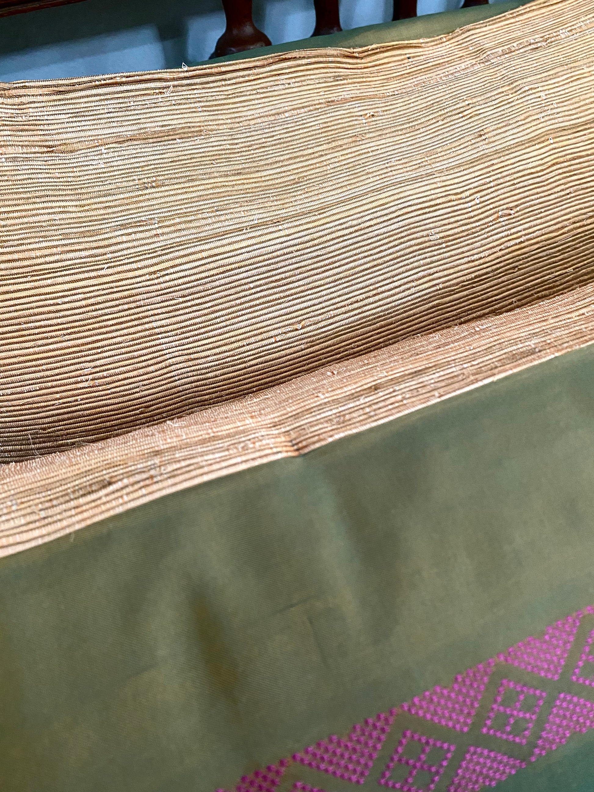 - 100% hand-woven silk & banana threads, featuring woven Chin pattern