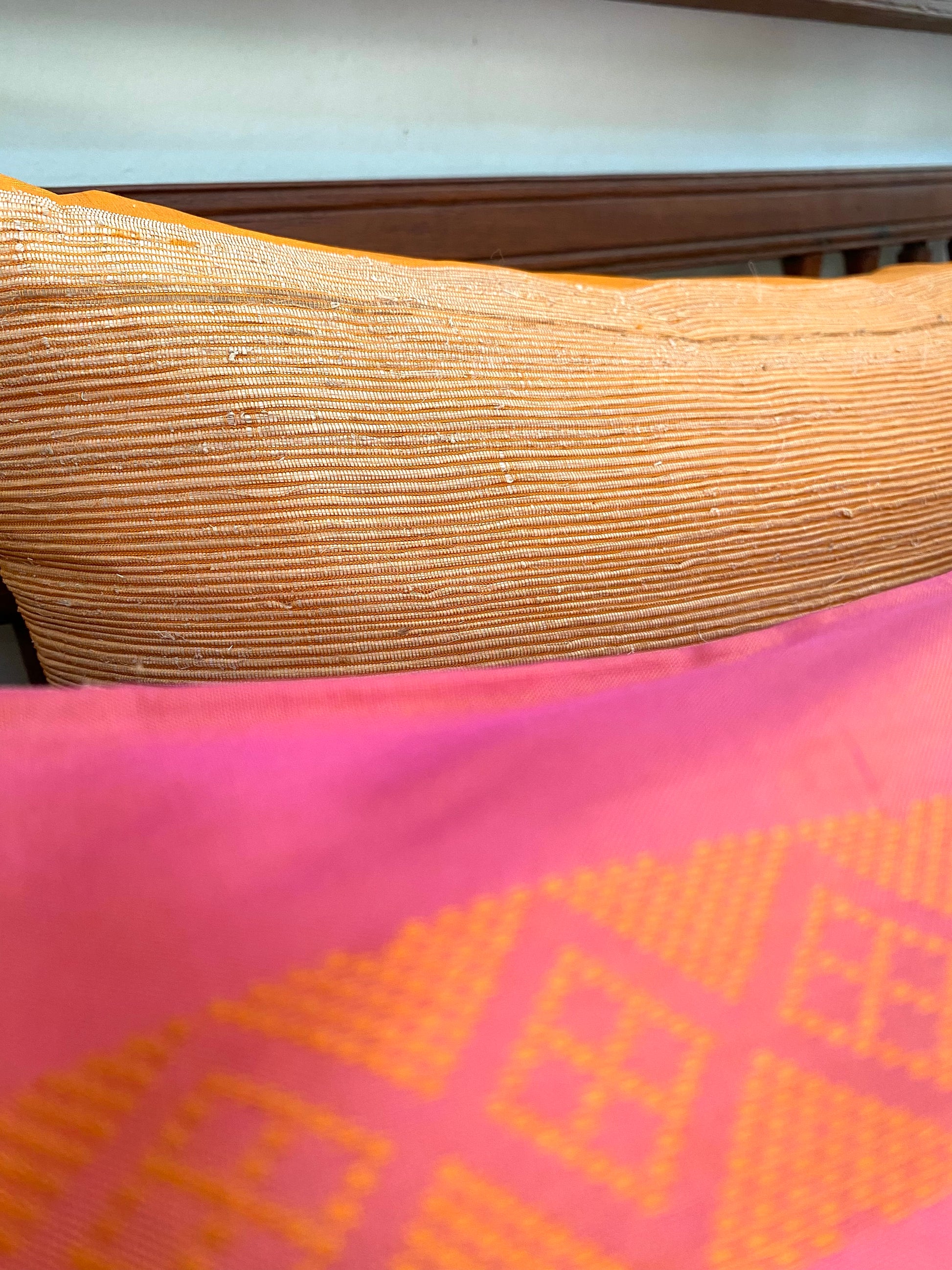 Pochi cushion covers come in a wide range of colours and sizes – one side is woven in 100% silk and the other side is a mix of banana and silk – that gives the cushion some texture so it won’t slide away off your chair when you sit down – it will stay put!