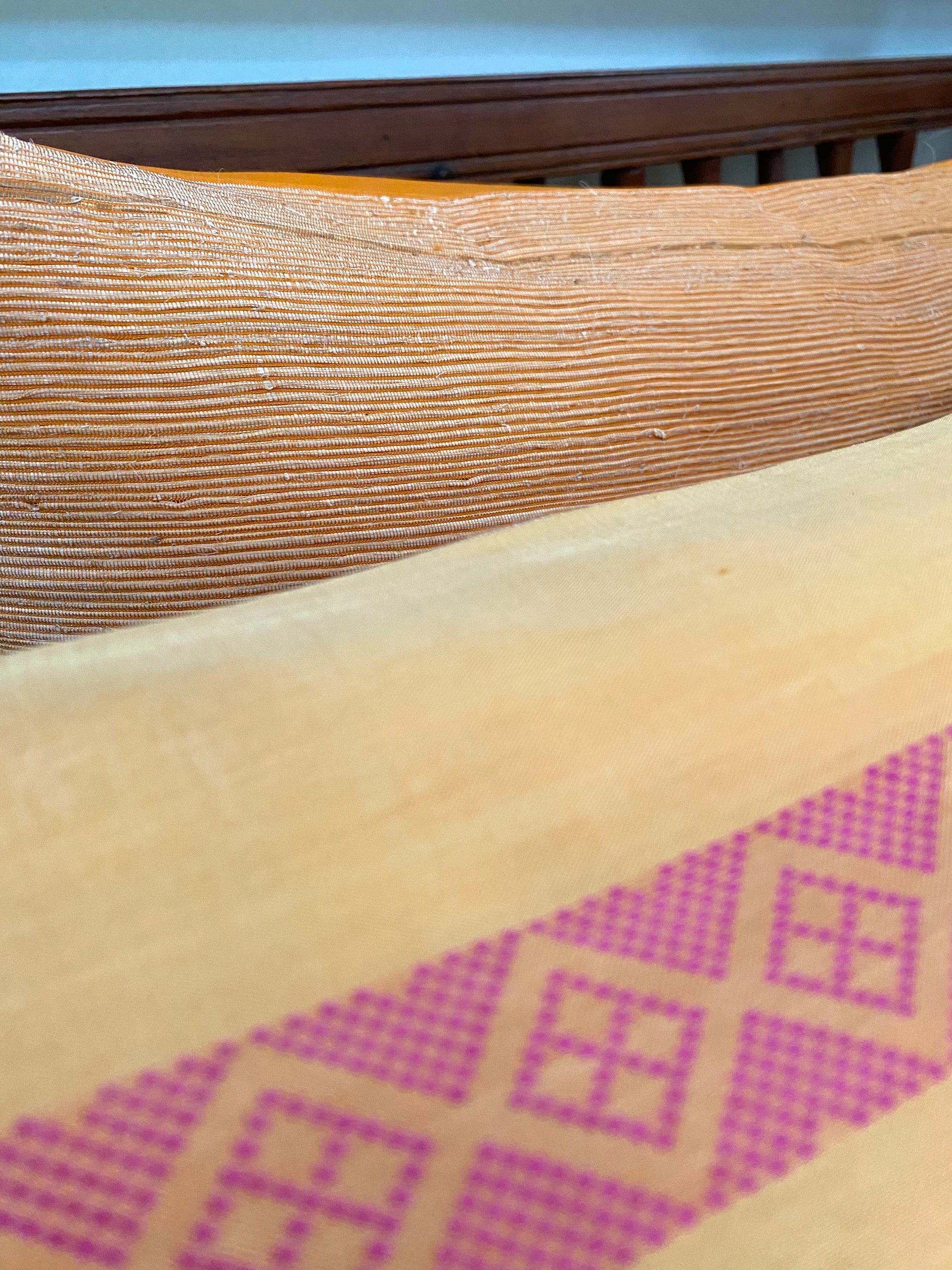 - 100% hand-woven silk & banana threads, featuring woven Chin pattern